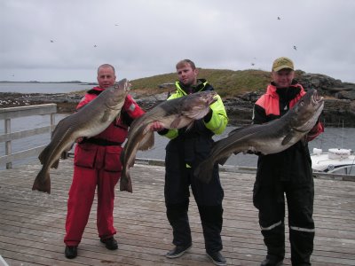 Just nu är fisket efter torsk o sej väIdigt bra på Röst och Vaeröy. Idag blev det tungböj i spöna på Röst. Petter Garvars (vänster på bild) tog dagens största på 20 kg (126 cm lång) och i mitten Cristian Suss 18,2 kg inte långt efter har vi Johan Jakobsson på 16,1 kg. Det kom även upp en fin flundra på 16.3 i en finsk båt, som fångades med sill.