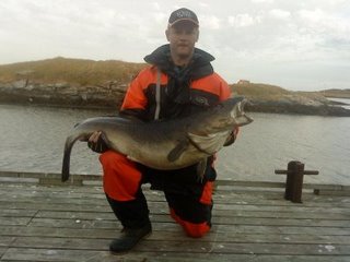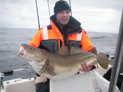 Idag var jag ute med ett svenskt gäng ifrån skåne, vi hade ett grymt bra sej och torsk fiske, här Johan med dagens största.